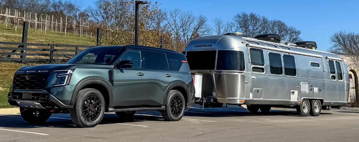 The Nissan Frontier provides dependable midsize pickup performance with up to 6,720 pounds of towing capability, making it well-suited for small campers or lightweight travel trailers. For families who prefer an SUV, the Pathfinder offers up to 6,000 pounds of towing capacity, while the Armada reaches 8,500 pounds, enough to handle many towable RVs and larger holiday setups.